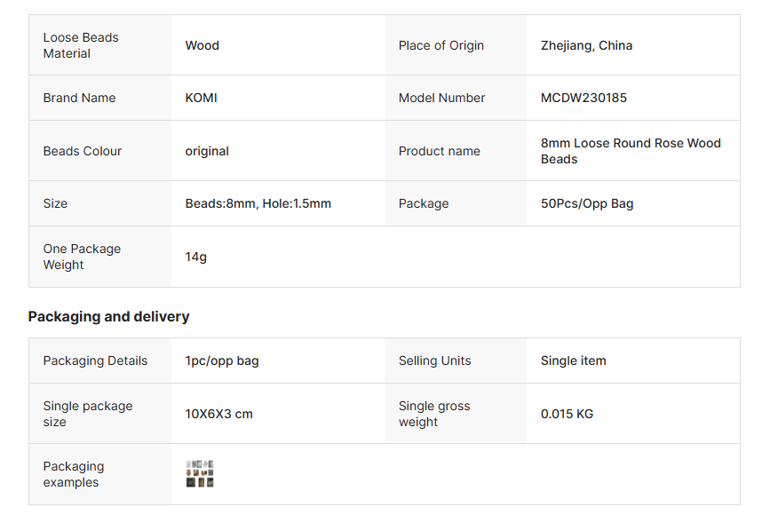 KOMI Natural Wood Beads Round Rose Wooden Bead 8mm 50pcs Pack Loose Bulk Wooden Beads for Crafts Jewelry Accessories Parts