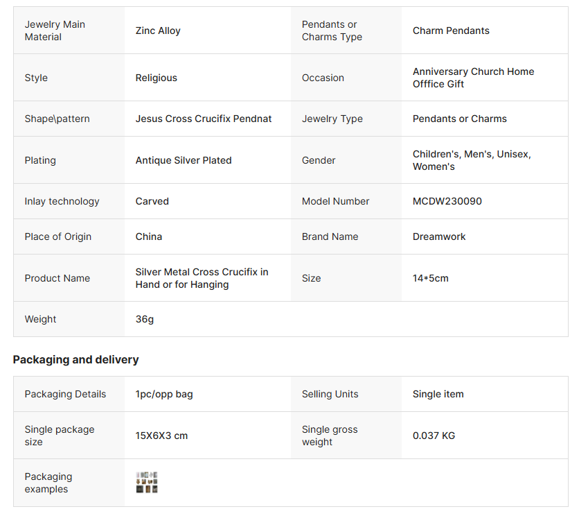 Dreamwork Crucifix Wall Cross Religious Hanging Metal Alloy Jesus Cross Home Decoration Jewelry Accessories in Anti-Silver