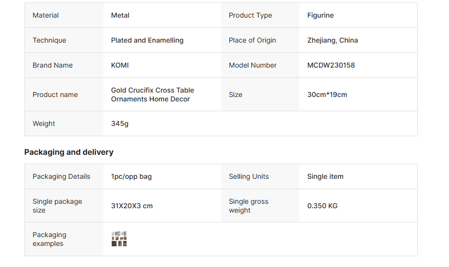 KOMI Home Decorations Gold Metal White Enamel Crucifix Cross Table Ornaments Wall Hanging for Office Restaurant Home Decor Craft