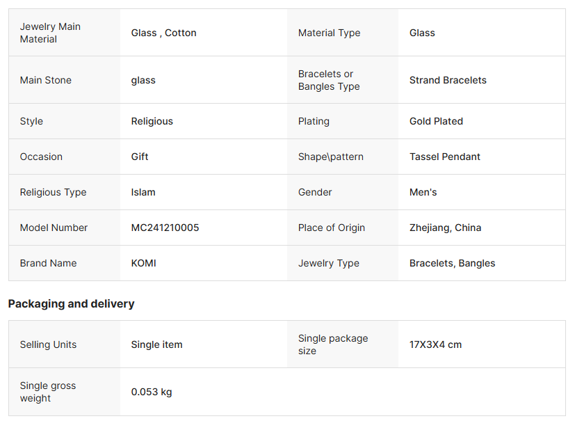 KOMI 10MM Muslim Prayer Beads 33pcs Glass Stone Rosary Tasbih Islam Misbaha Beaded Rosary with Colored Tassel for Men Gifts