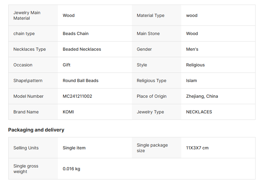 KOMI 8mm Wooden Rosary Beads 99pcs Muslim Islamic Tasbih Prayer Beads Necklace with Tassels Theisbi Hazan Misbaha for Men Gifts