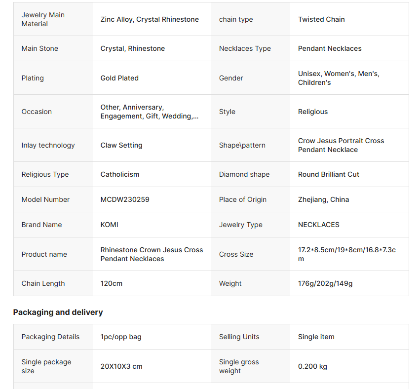 KOMI Fashion Large Rhinestone Crown Jesus Cross Pendant Necklaces Long Chain Necklaces for Women Wedding Birthday Gifts
