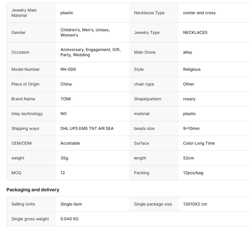 2024 Plastic Rosary Beads Cross Pendant Long Necklace Catholic Christ Religious Jesus Jewelry for Women Men Gift