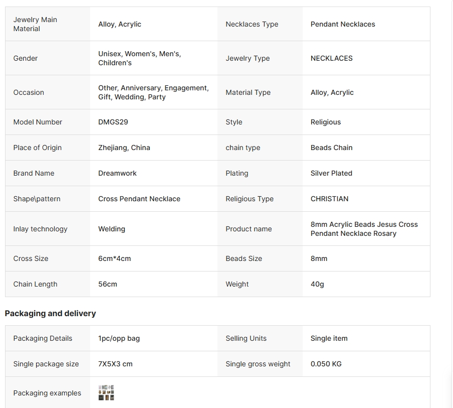 Dreamwork Rosaries Necklaces Jesus Cross Pendant 8mm Black Acrylic Beads Rosary Necklace for Pray Gift and Car Accessories