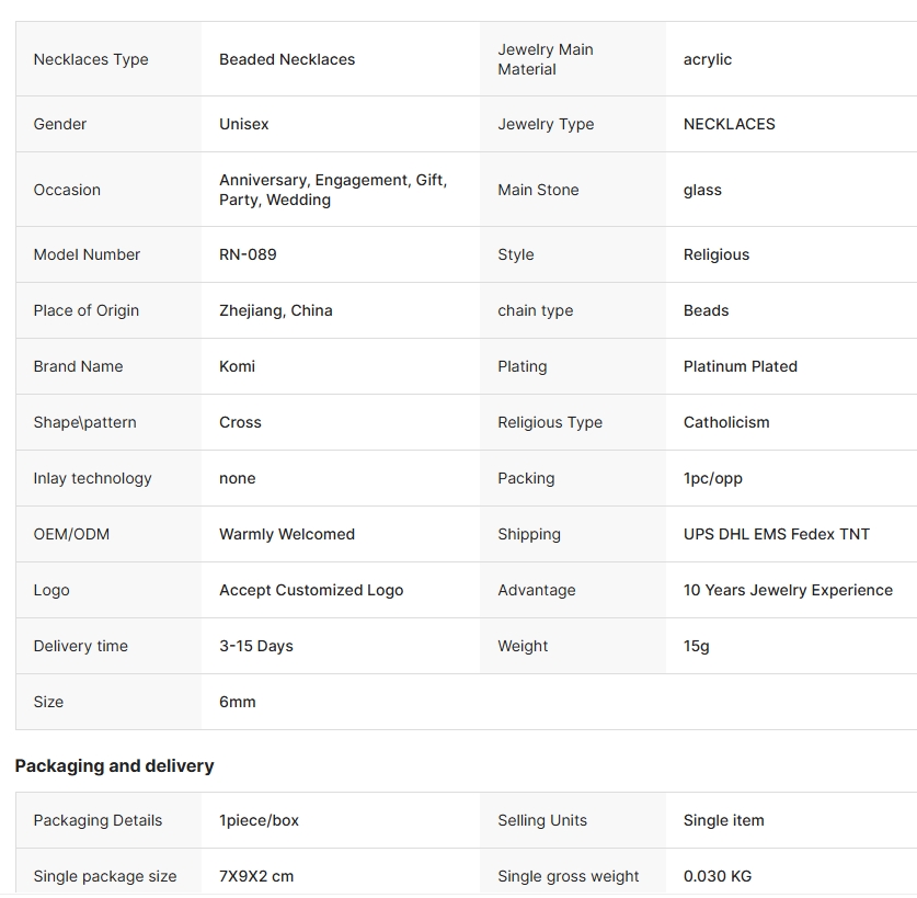 Komi 2024 Hot Sell Rosary Acrylic Necklaces Religious Rosary Necklace for Pary