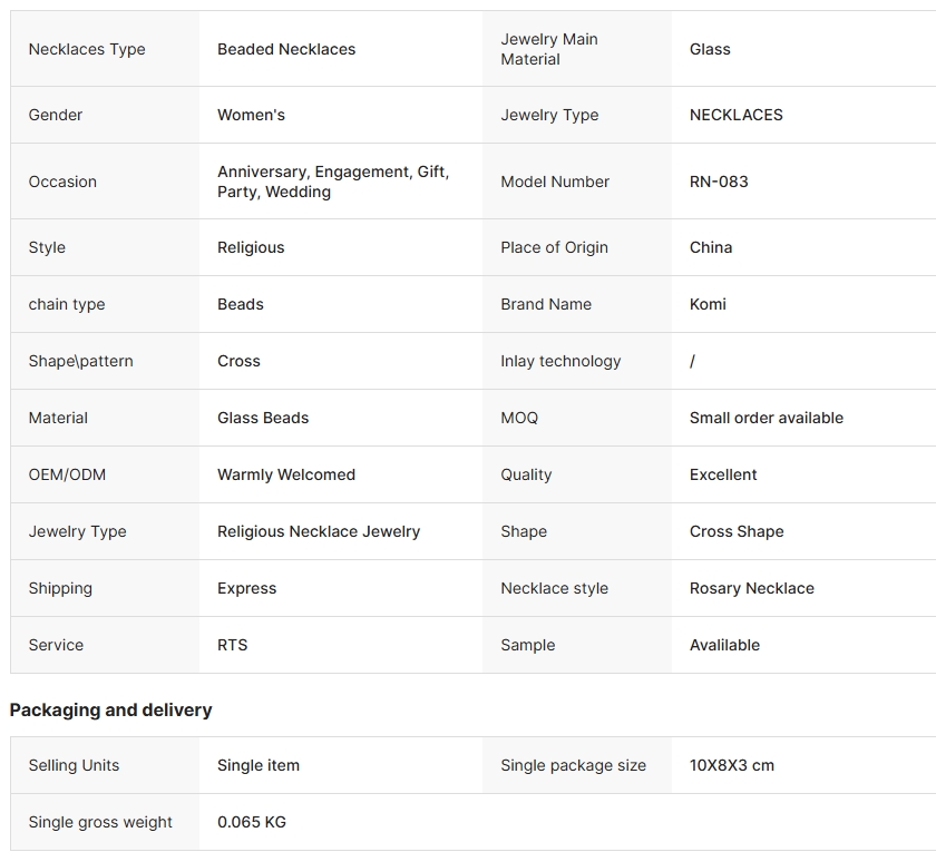 2024 Komi Wholesales Purple Glass Beads Jewelry Handmade Necklace Cross Pendant Rosary Necklace