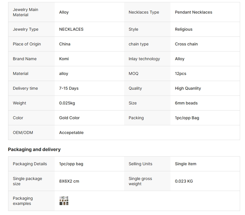 Komi Hot Selling Foreign Trade Exquisite Cross Double-sided Holy Father Mother Necklace Pendant Gifts with Accessories