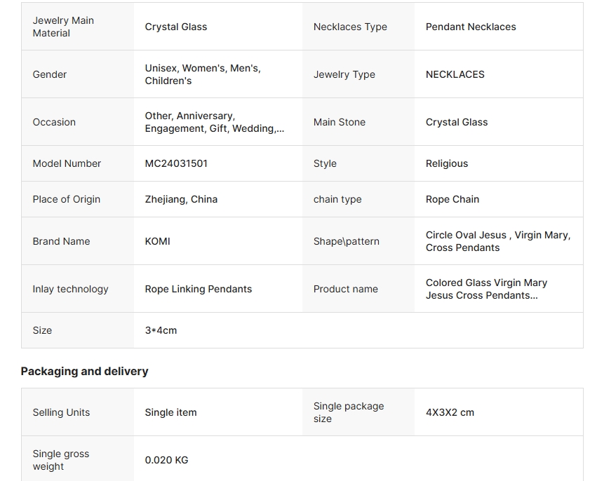Be the first to review “KOMI Dainty Geometric Circle Round Oval Crystal Glass Jesus Virgin Mary Cross Pendants Necklaces for Men Women Prayer Jewelry”Cancel Reply