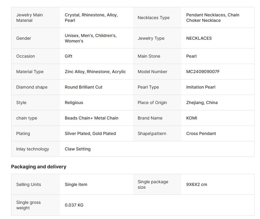 KOMI 2024 New Crystal Gold Cross Pendant Event Gift Cross Religious Jewelry