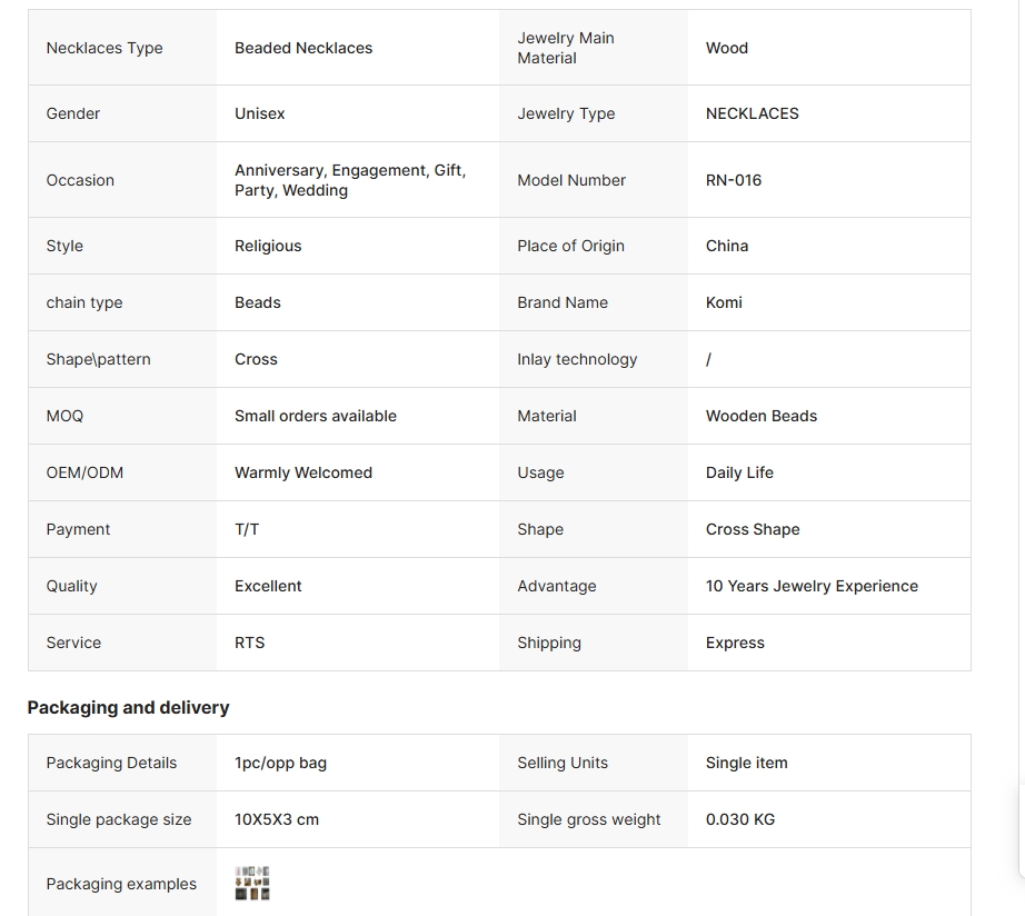 2022 Komi Wholesales Brown Wood Beads Necklace Religious Jewelry Crucifix Pendant Rosary Necklace