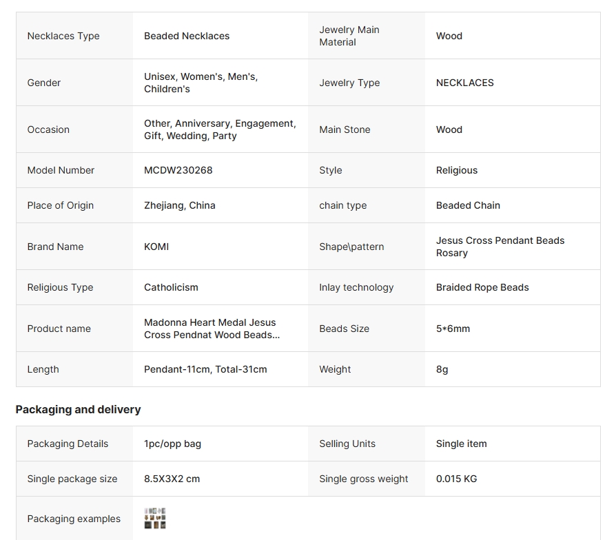 KOMI Handmade Burgundy Wood Beads Rosary Necklace Jesus Cross Beaded Necklaces Hand Rosary Beads for Religious Prayer Jewelry