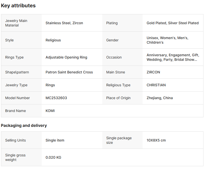Be the first to review “KOMI Gold Stainless Steel Zircon St.Benedict Cross Exorcism Ring for Men Silver Patron Saint Benedict Adjustable Opening Rings”