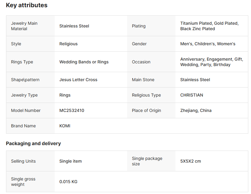 Komi Wholesales Religious Punk Style Jewelry Personality Cross Crucifix Retro Men’s Rings