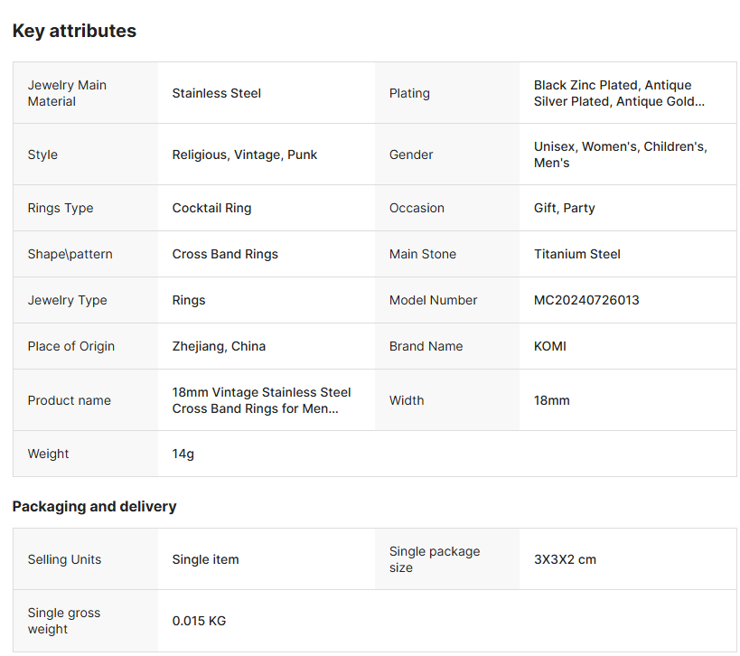 Be the first to review “KOMI Vintage Mens Stainless Steel Cross Ring Silver Black Gold Personalized Punk Cross Band Rings for Men Boys Jewelry Gifts”Cancel Reply
