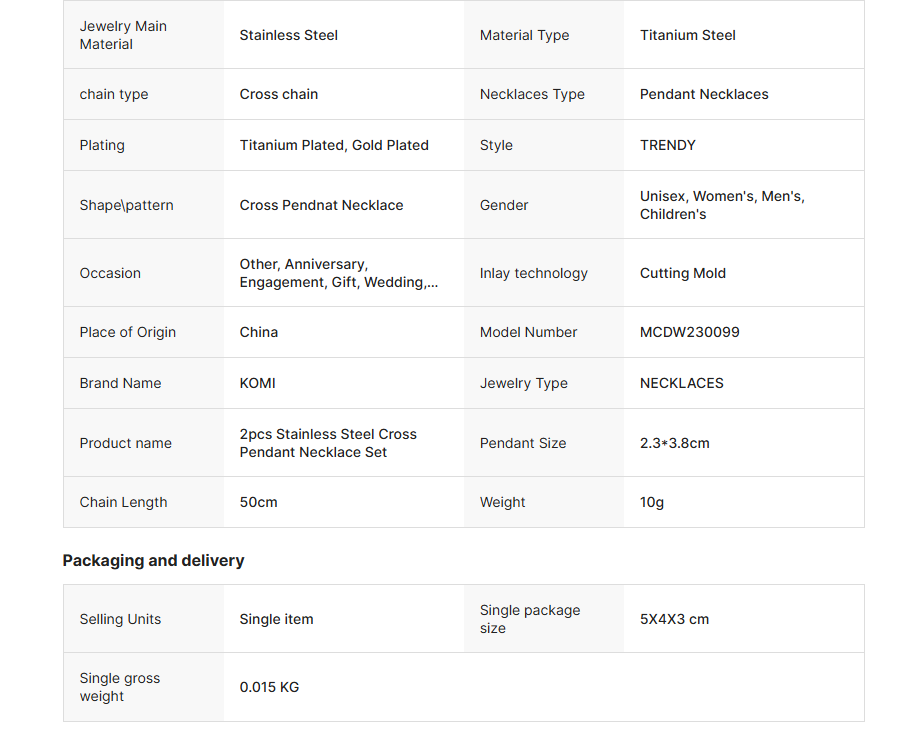 Dreamwork Fashion Stainless Steel Cross Pendant Necklace Set Titanium Steel Lover’s Necklaces Coat Chain Accessories