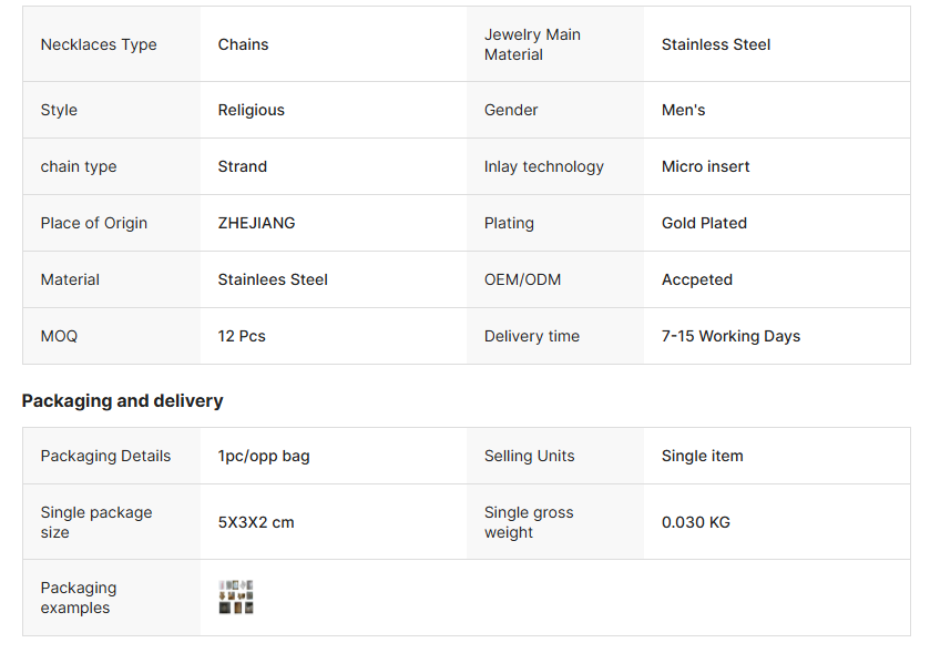 Komi 2023 New Cross Stainless Steel Necklace Men’s Gold Religious Necklace