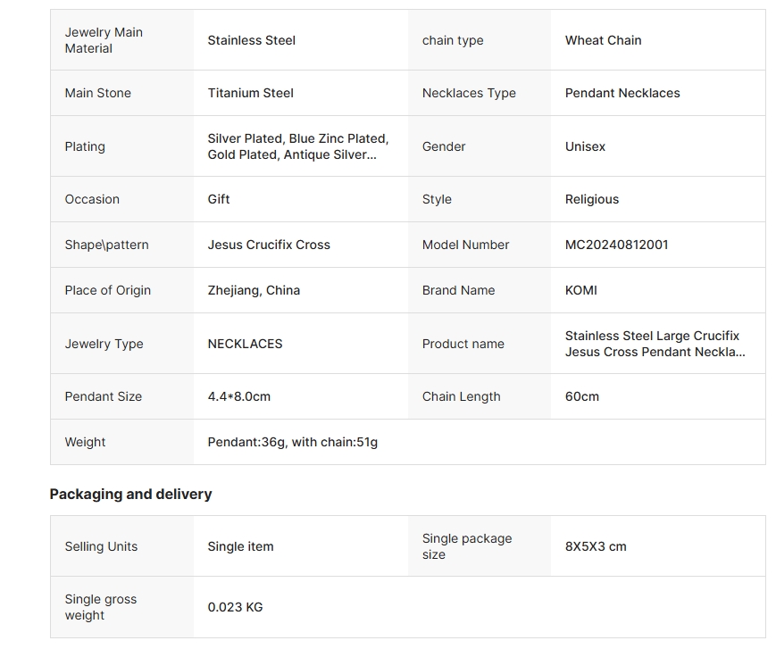 KOMI Cross Necklace for Men Silver Black Gold Stainless Steel Jesus Crucifix Cross Pendant Necklace for Men 24 Inch Wheat Chain