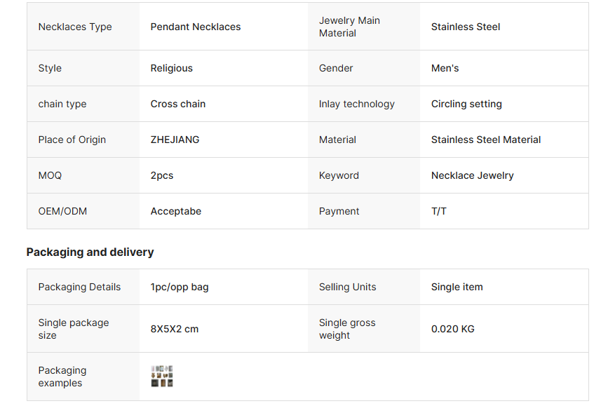 Komi Fashion Large Cross Stainless Steel Men’s Necklace Gold Chain Necklace Jewelry
