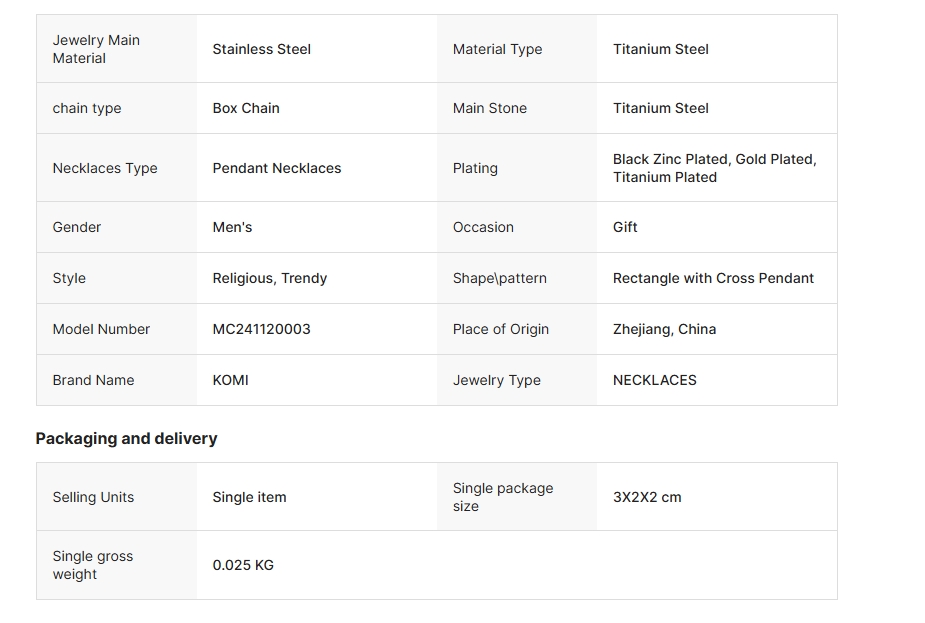 KOMI Silver Black Gold Stainless Steel Rectangle Medal Engraved Cross Pendant Necklace for Men Box Chain 24 Inch Jewelry Gifts