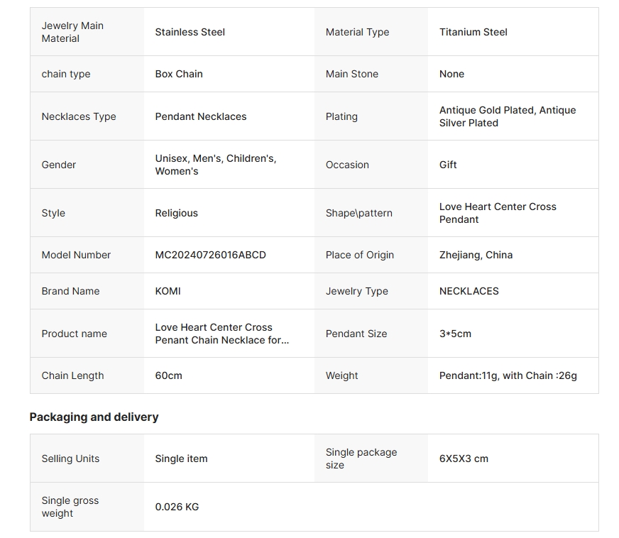 KOMI Stainless Steel Cross Pendant Chain Necklace for Men Women 24 Inches Vintage Love Center Cross Necklace for Boys Girls Gift