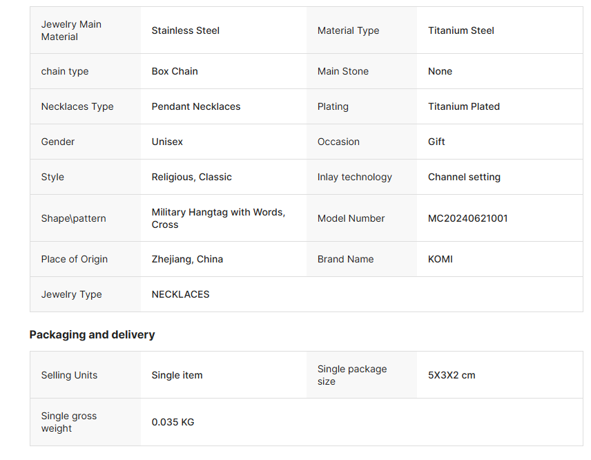 Be the first to review ““KOMI Titanium Steel Jewelry Stainless Steel Hangtag Cross Pendant Necklace for Men Cross Necklace for Boys Gift “”
