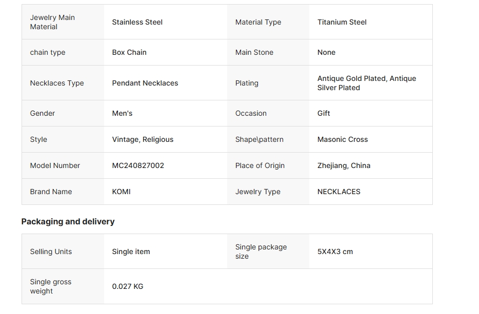 KOMI Vintage Masonic Stainless Steel Cross Necklace for Men Celtic Cross Pendant Necklace for Men Boys 24 Inches Box Chain Gifts