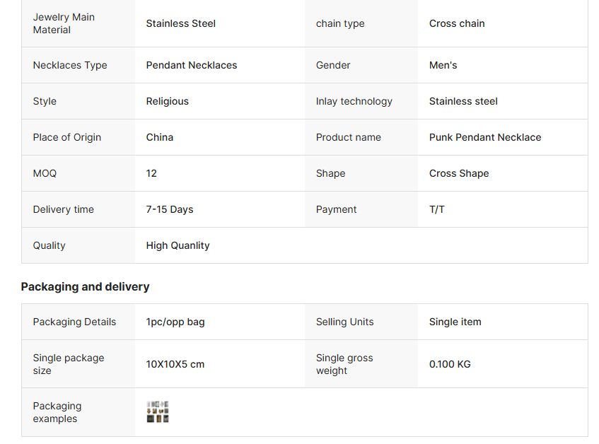 Punk Style Hip Hop Rock Stainless Steel Cross Pendant Jesus Cross Necklace