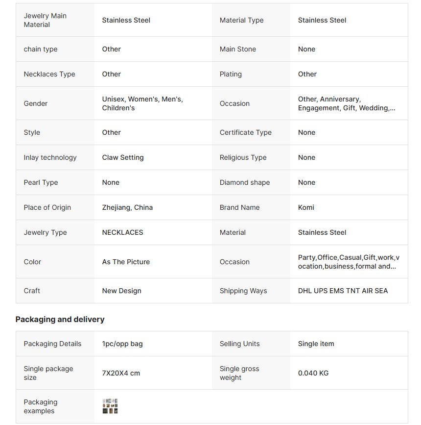 Komi Stainless Steel Necklace Pendant Girls Popular Clothing Accessories Titanium Steel Jewelry